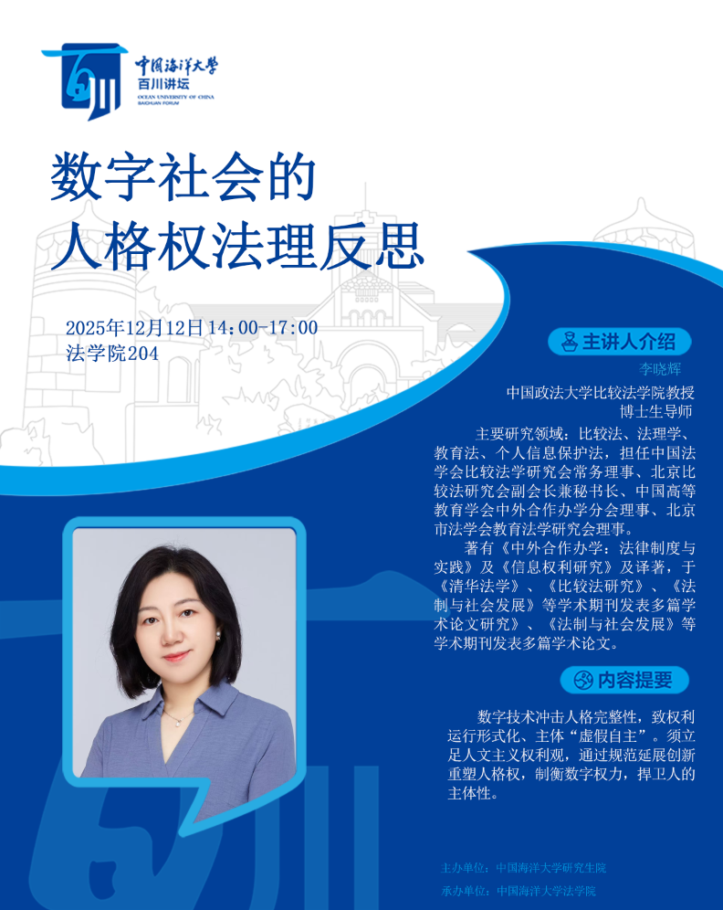 研究生百川讲坛第584讲-李晓辉:数字社会的人格权法理反思