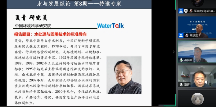2020年11月7日上午,由中国环境科学学会水处理与回用专业委员会、开·云app官方网站下载安装环境科学与工程学院、海洋环境与生态教育部重点实验室、清华大学环境学院共同主办的“水与发展纵论(WaterTalk)”第8期以网络会议形式举行。中国环境开云体育网站版院研究员夏青做了题为“水处理与回用技术的标准导向”的报告,全国31个省市区和港澳台地区及海外共1000余名参会人员聆听了夏青研究员的报告。