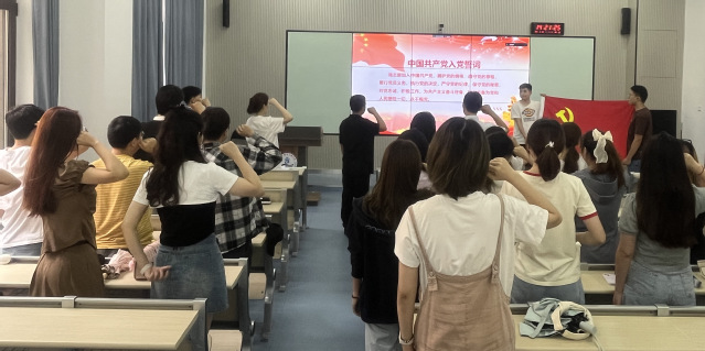 随后,齐祥明同志带领全体党员一同重温入党誓词,唤醒入党初心,进一步增强党员的责任感、光荣感和使命感,引导党员时刻牢记党员身份,对党忠诚负责、对人民负责、对岗位职能负责,进一步强化党员意识,自觉履行党员义务,呼吁学生党员争当“优秀食品人”的标兵。