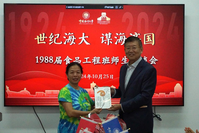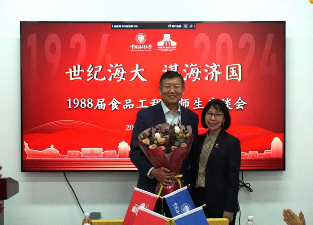 林洪表示,作为1988届校友们的班主任,历经数十载能再度与同学们齐聚一堂,既激动又感动。他再次欢迎同学们回到海大、回到食品学院,历经岁月,更显情深义重。师生们共同回忆了求学期间的趣闻和故事,分享了同学们的发展情况,校友代表向林洪教授送上了鲜花以表感激之情。