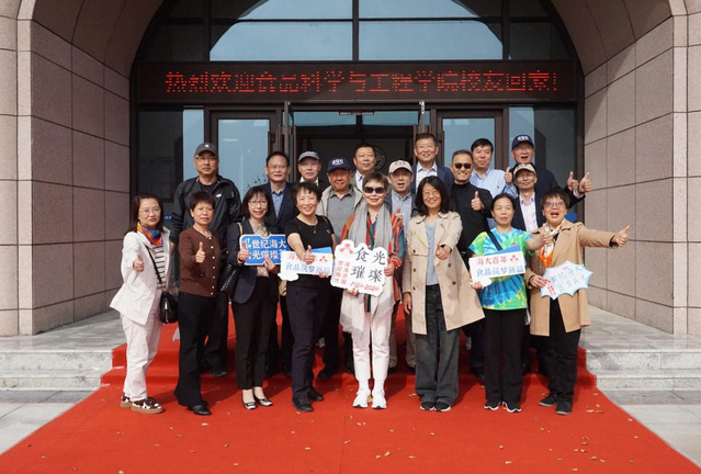 在林洪老师带领下,师生参观了食工楼及实验中心,并共同在签名墙前合影留念。