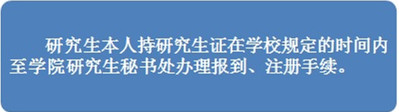 注意事项 | 1.未按学校规定缴纳培养费、住宿费或者其它不符合注册条件的研究生不予注册。 2.未按规定报到注册的研究生不予开通研究生教育综合管理信息系统。 |