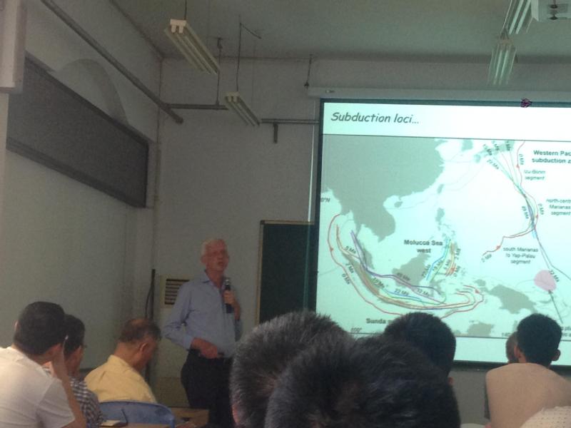 John Suppe教授是美国科学院院士,台湾大学Distinguished Chair Research Professor,美国普林斯顿大学Blair Professor of Geosciences Emeritus,国际著名构造地质学家。曾任美国普林斯顿大学地质系主任,美国麦哲伦号金星探测计划的图像解释顾问。他在断层相关褶皱理论、定量分析构造变形的几何学和运动学过程等构造地质学研究领域做出过开创性贡献,成果已经被写入多本 “构造地质学” 经典教科书。著有《Principles of Structural Geology》,并发表文章100多篇。 Suppe教授是国际著名的构造地质专家,长期致力于东亚地区的大地构造学研究,与国内长期保持合作和交流关系,取得了丰硕成果。他来访后将介绍关于西太平洋俯冲带的最新研究进展,并开展学术交流和探讨研究合作,对于我校西太平洋研究计划具有重要意义。 2016年7月4日,Suppe教授为我校师生作了一个半小时的专题演讲,介绍了他的研究小组在西太平洋俯冲带历史演变过程方面的最新科研成果。他们的工作是对板块构造学的重要补充,引起了参会学者的共鸣和讨论。合作方面。Suppe教授将于2016年秋季加盟美国休斯敦大学,领导建立“Tectonics & tomography”研究中心。他的到来为这个研究中心与开·云app官方网站下载安装进一步合作开展西太平洋地球结构研究具有重要推动作用。
