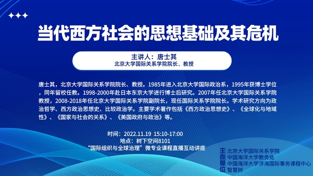 讲座主题:当代西方社会的思想基础及其危机