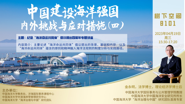 讲座主题:中国建设海洋强国内外挑战与应对措施(四):纪念“海洋命运共同体”倡议提出4周年专题讲座