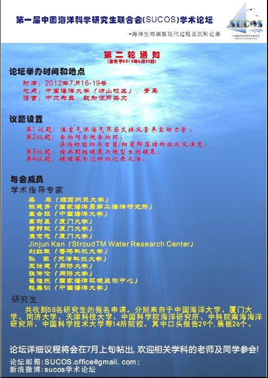 第一届中国海洋开云体育网站版生联合会(SUCOS)学术论坛第二轮通知