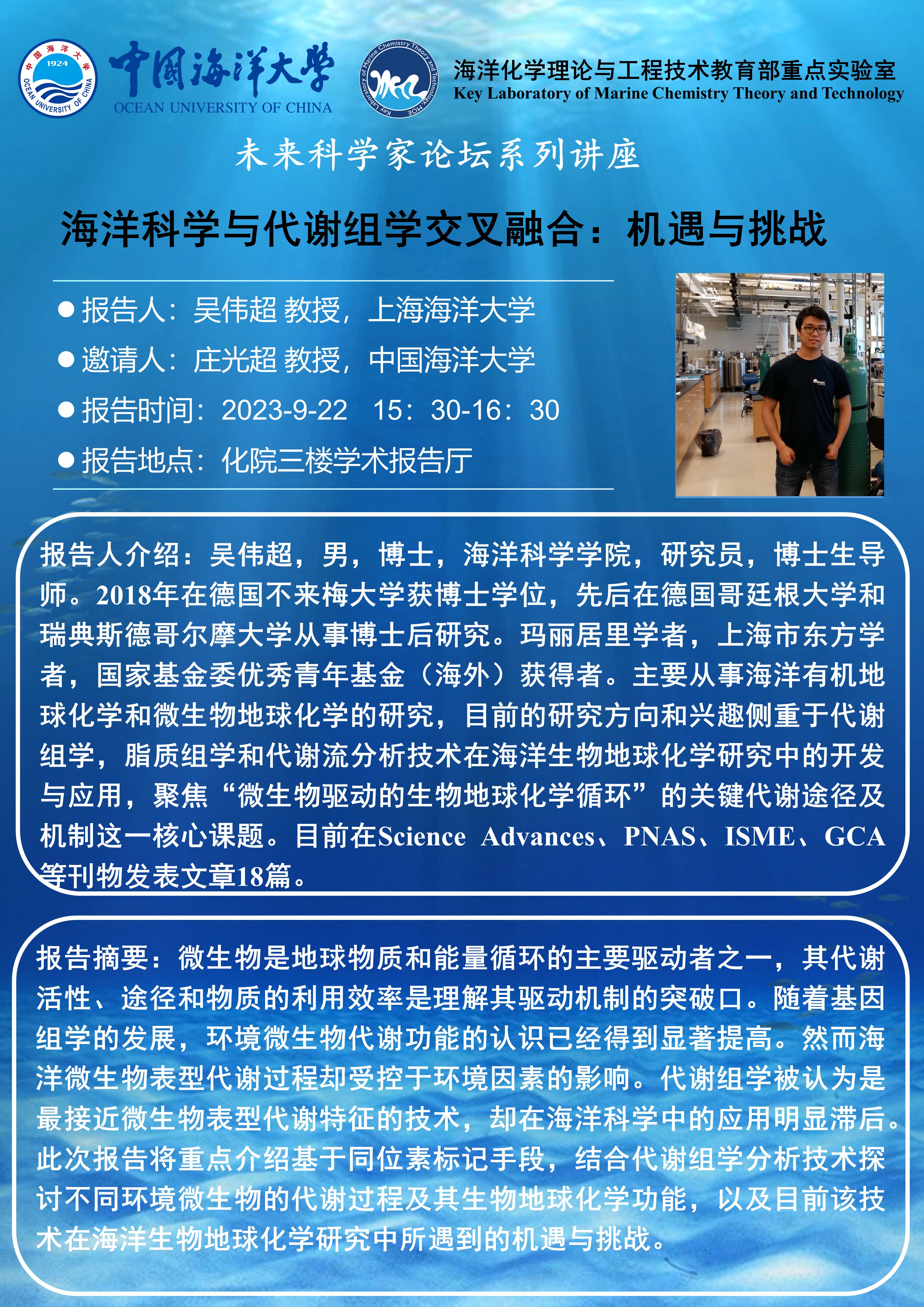 9月22日吴伟超教授报告:海洋科学与代谢组学交叉融合:机遇与挑战