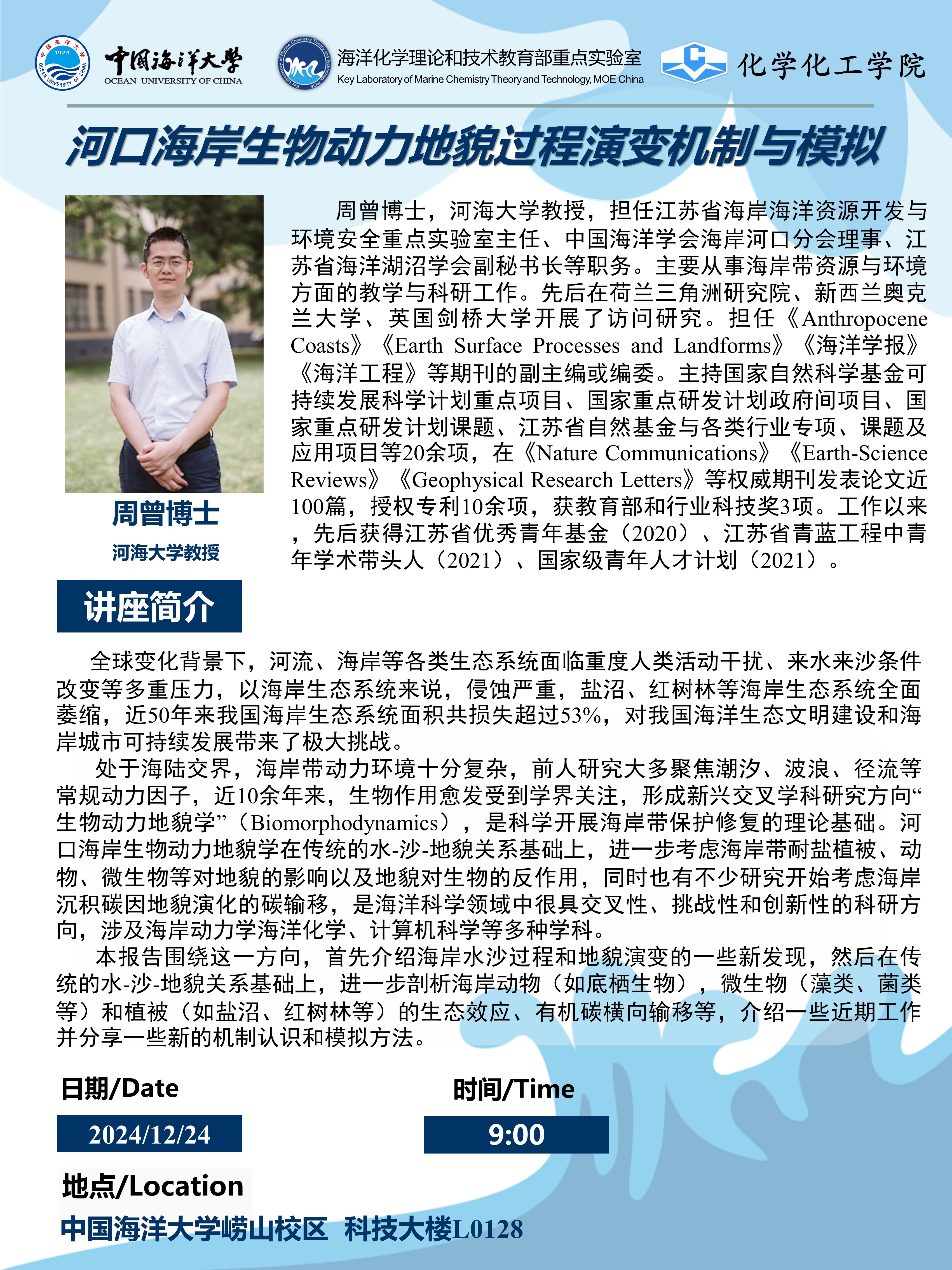 12月24日 周曾教授报告:河口海岸生物动力地貌过程演变机制与模拟