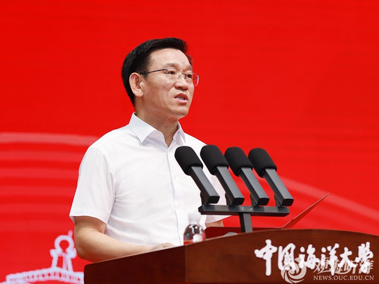 张峻峰代表学校对新生表示欢迎。他指出,中国海大即将迎来百年华诞。建校以来,学校英才辈出、桃李天下,享有“学在海大”的美誉,培养了36万余栋梁之才,为科教兴国、海洋强国建设提供了源源不竭的动力。