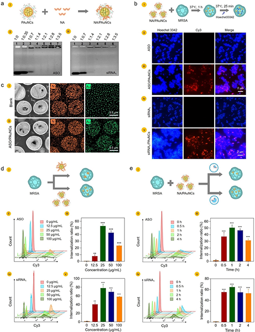 该研究利用生物兼容的碳点(CDs)、金纳米簇(AuNCs)等小尺寸纳米材料,负载siRNA和ASO高效进入鳗弧菌等致病菌,实现对其特定基因表达的抑制。实验不仅揭示了纳米结构在递送ASO至菌体的过程、规律和机制以及释放原理,还将这一技术与水下黏附水凝胶结合,获得“水下创可贴”以提升其感染伤口修复的靶向效果,为水环境中动物细菌疾病的防控提供了切实可行的创新解决方案。