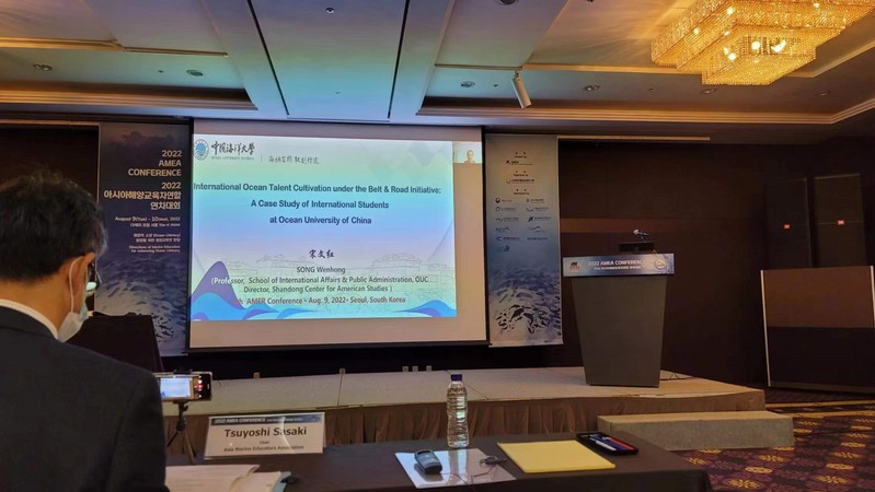 2022年8月9日至11日,第四届亚洲海洋教育者协会国际会议在韩国首尔举办,我校山东省与美国交流合作研究中心主任、国际事务与公共管理学院教授宋文红受邀参会并做了题为“International Ocean Talent Cultivation under the Belt & Road Initiative: A Case Study of International Students at OUC”的线上报告。