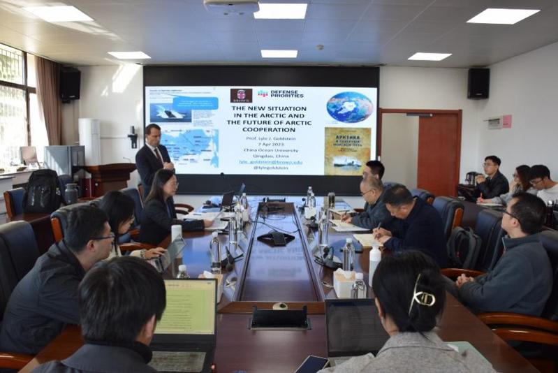 2023年4月7日,美国布朗大学Watson国际事务研究所的访问教授Lyle Goldstein 应邀做客海大海外名师讲堂,做了题为“新形势下北极的发展态势以及合作前景”的学术讲座。学院副院长王刚教授、郭培清教授、周兵兵副教授、陈琛副教授、胡馥妤副教授、张佳佳博士、邱云秋博士等60余人参加讲座。本次讲座由山东省与美国交流合作研究中心主任宋文红教授主持。