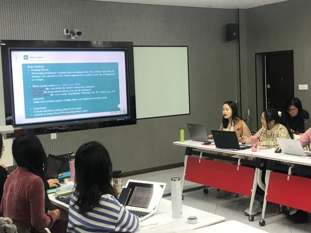 随后,团队围绕L1和L2句法表征加工研究、母语者和二语者词语组合固定性和构词性研究等前沿议题进行深入探讨。本次学术沙龙气氛融洽热烈,拓展了整个团队的研究视野,培养了团队的学术能力。