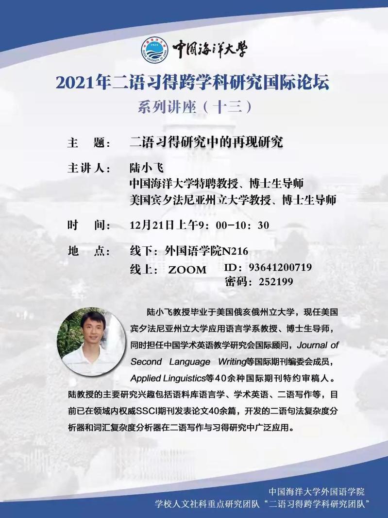 团队建设 | 学术活动预告:2021年二语习得跨学科研究国际论坛系列讲座(十三)