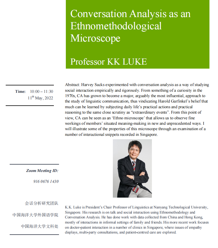 团队建设 | 学术活动预告:从社会成员微观视角出发的会话分析研究