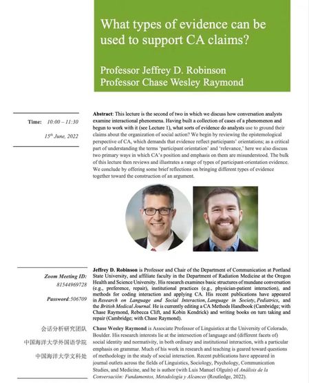 团队建设 | 学术活动预告:什么类型的证据可以支撑会话分析的研究发现?