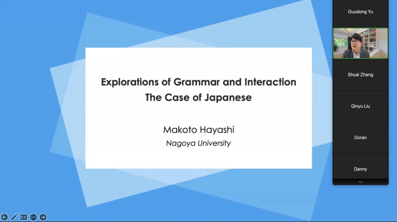 2022114日下午,国际知名会话分析学家、日本名古屋大学Makoto Hayashi教授应学校会话分析研究团队之邀通过Zoom会议平台作了题为“Explorations of Grammar and Interaction: The Case of Japanese”(语法与互动界面研究——以日语互动为例)的学术讲座。讲座吸引了来自国内外高校百余名会话分析研究者的积极参与。讲座由会话分析研究团队负责人于国栋教授主持。