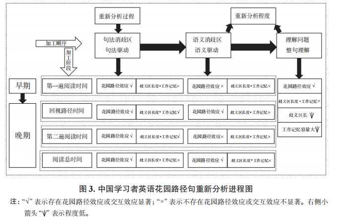 根据研究结果,该研究构建了中国学习者加工英语二语花园路径句的重新分析进程图(图3)。