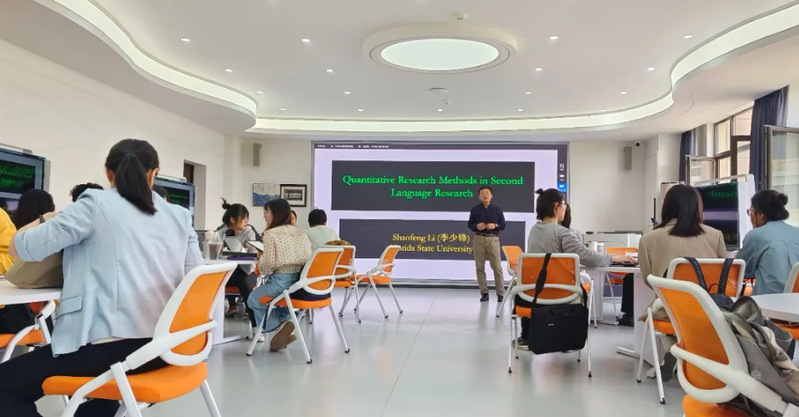 在互动环节,李少锋教授耐心地解答了每一个问题,并鼓励学生们在未来的研究中保持开放的心态,勇于尝试新的方法和思路,推动学术创新。团队负责人杨连瑞教授对本次活动进行了总结,他表示,李少锋教授的精彩演讲不仅为师生们带来了宝贵的学术指导,也指明了二语习得领域未来研究的新方向。他强调,严谨的定量研究设计对推动该领域的创新与发展至关重要。此次讲座不仅为团队提供了一个与国际知名学者深入交流的平台,也激发了大家对定量研究在二语习得领域的应用进行了深入思考。