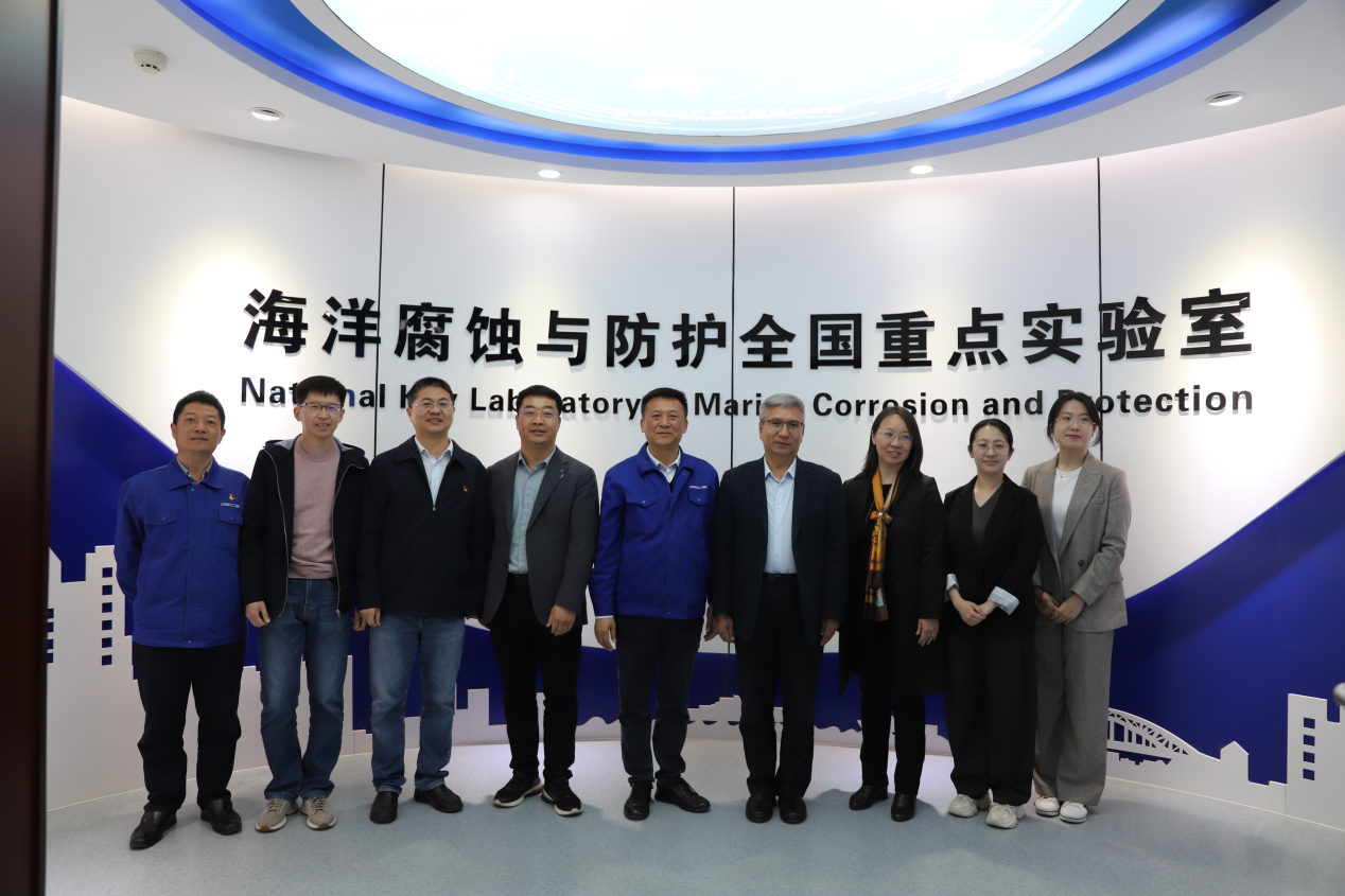 中国船舶集团有限公司第七二五研究所青岛分部是我国最早从事腐蚀与防护研究的单位,主要围绕海洋环境中的腐蚀与污损问题开展腐蚀损伤、电化学保护、涂层保护和防腐防污生物材料技术的研究开发工作,设有海洋腐蚀与防护全国重点实验室,是我国海洋腐蚀防护领域的引领者。在中国船舶重工集团公司第七二五研究所青岛分部,调研组围绕海洋材料技术创新、科研转化与产学研协同发展等开展调研。