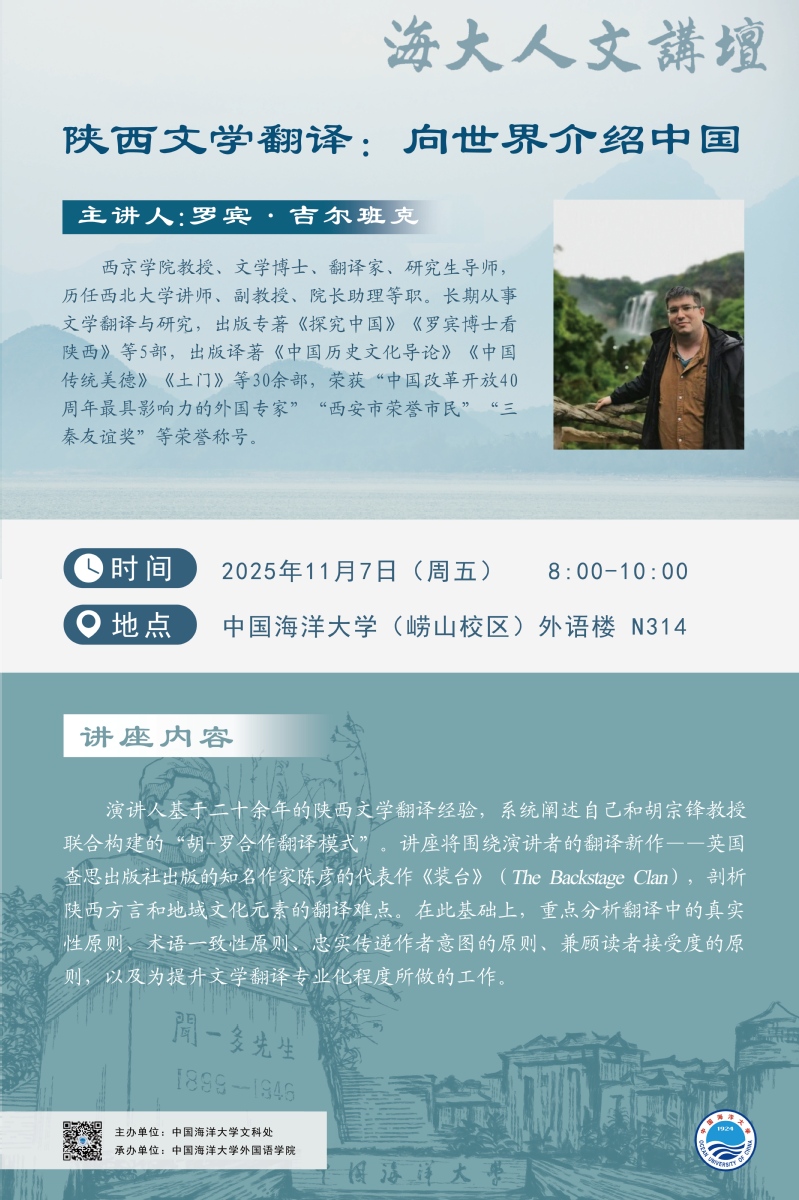 ky娱乐安卓版2025年第83讲—罗宾·吉尔班克 | 陕西文学翻译:向世界介绍中国