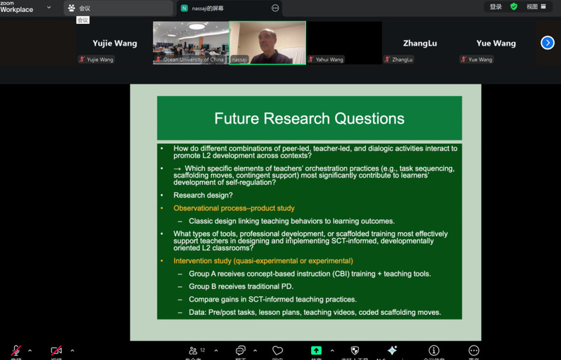 尤为重要的是,Nassaji教授在评述每项研究后,都展示了如何从中衍生出具有价值且可操作的未来研究问题,并探讨了相应的研究设计(如准实验研究、行动研究、混合方法研究等)。例如,从差异化教学研究中,可引申出“哪些类型的专业发展能最大程度提升教师实施差异化教学的自我效能感?”;从教师身份研究中,可追问“身份协商如何影响教师的课堂教学决策?”等。为在场师生提供了宝贵的研究思路与设计范例。