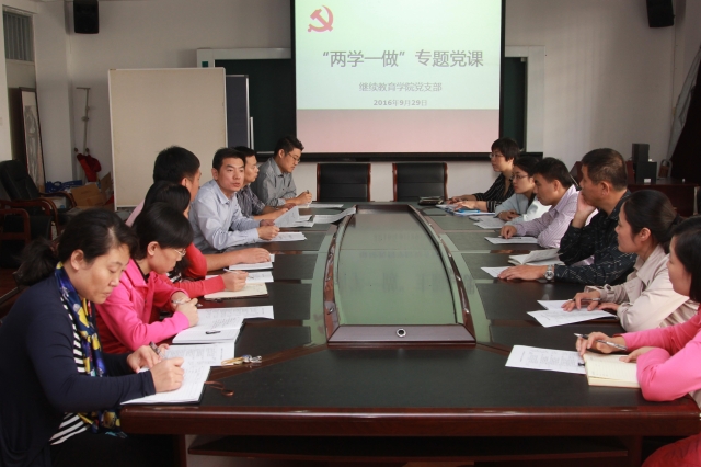 9月29日上午,继续教育学院、职业技术师范学院党支部召开党员大会,围绕“讲道德,有品行”主题,开展“两学一做”学习教育专题学习会,并对本学期“两学一做”学习教育做了部署。直属业部门第二党总支副书记、副院长刘杰出席会议并讲话,党支部书记、招生部主任倪思亮主持会议。