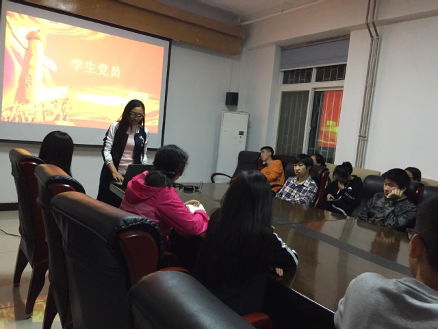 首先,预备党员2013级生态学崔馨逸带领学弟学妹们缅怀被授予“两弹一星荣誉勋章”的郭永怀,她号召同学们在享受着优越的学习条件的同时,要学习郭永怀先生无私奉献的精神,要勇于担当,更加努力。接着,她介绍了自己的入党经历,号召同学们为中华民族的伟大复兴尽自己的力量。